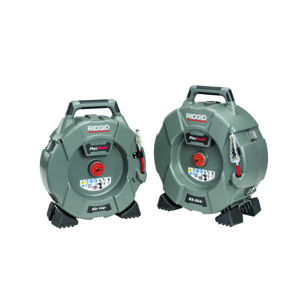 Čističky FlexShaft sú ľahké, kompaktné a vysoko efektívne stroje na čistenie stien rúr a odtokov o priemere 32-50 mm (model K9-102+) resp. 50-100 mm (model K9-204+). a do vzdialenosti 15,2 resp. 21,3 metra.